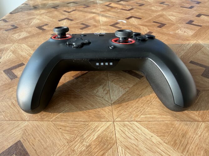 Vous n'allez pas être dépaysé avec la Rematch. On retrouve ici les fonctionnalités essentiels : le bouton GameChat bien sûr, mais aussi un gyroscope intégré, qui fonctionne bien, une manette sans fil avec un bon input-lag, et une batterie extrêmement généreuse, qui dure une quarantaine d'heure avec une seule charge et qui se recharge en USB-C, avec un câble fourni.