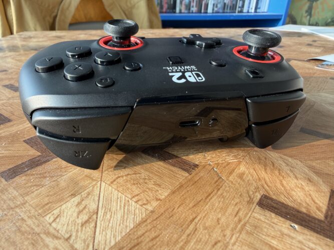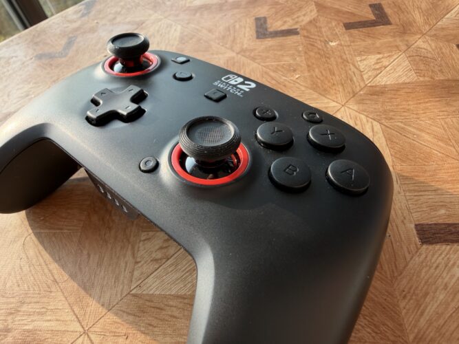 Quelques petits désagréments cependant : le positionnement des boutons Home et de capture avec les boutons “+ et -”. Régulièrement (comme Luna l'explique aussi dans son test), je me suis retrouvé à appuyer sur le mauvais bouton au lieu de mettre pause. Un choix étonnant mais qui ne posera pas de soucis si vous en faites votre manette principale. En main, la manette est plutôt convaincante. Elle n'atteint pas la qualité et le toucher de la manette made in Nintendo mais offre jusqu'à présent une alternative convaincante.