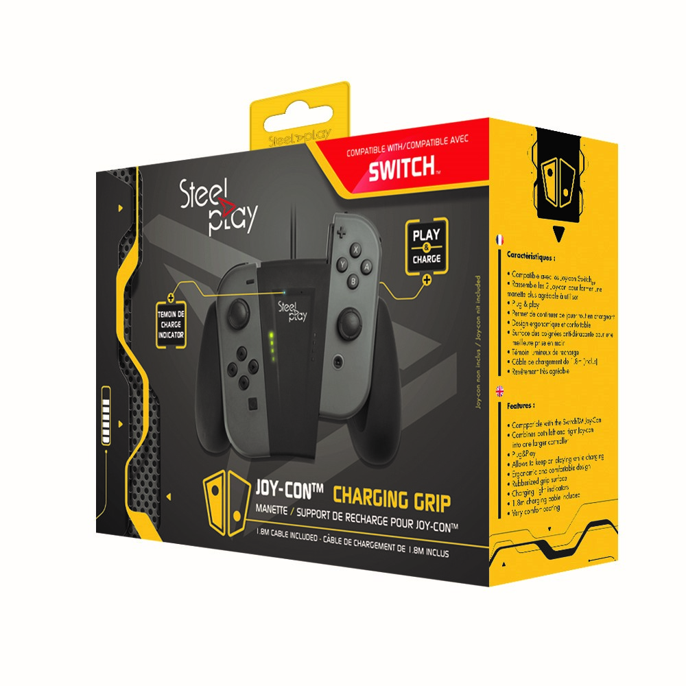 Nous commençons à avoir l’habitude des produits SteelPlay chez Switch-Actu. Nous nous attaquons à notre 5e test d’accessoire proposé par cette marque pour la Nintendo Switch. Aujourd’hui, parlons un peu de leur support de recharge pour Joy-Con, plus communément appelé charging grip. Il s’agit d’un accessoire permettant d’accueillir les Joy-Con tout en les rechargeant. Si Nintendo propose sa propre version, SteelPlay a décidé de passer à l’action avec son propre grip de recharge.