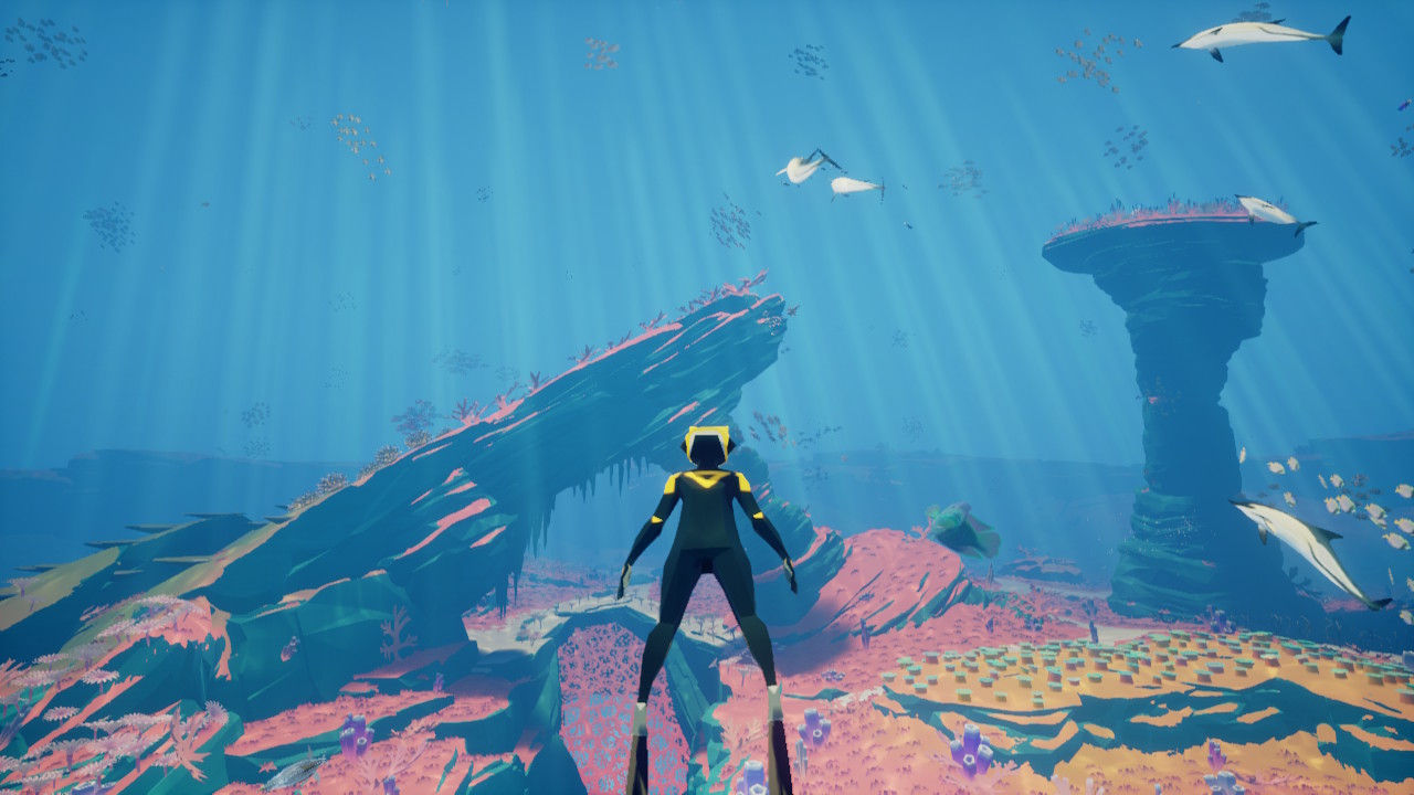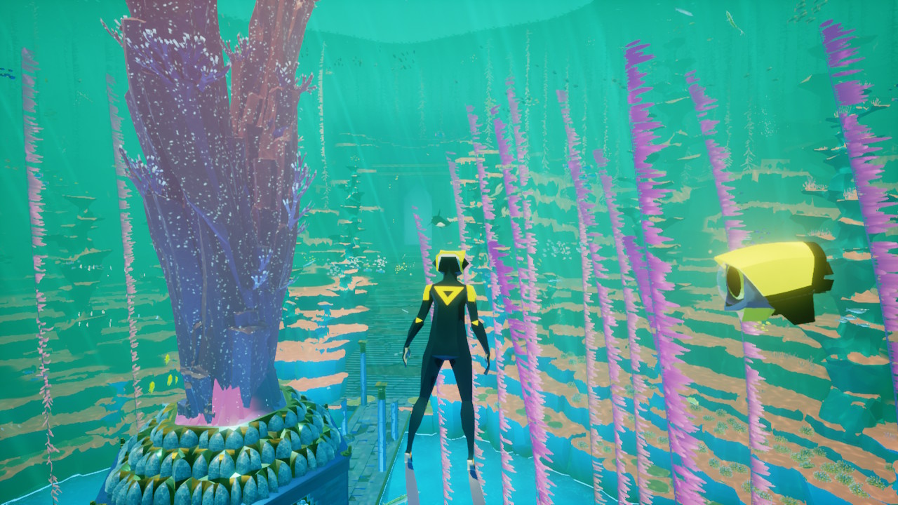Si l’envie de piquer une tête dans l’océan vous a pris depuis le retour du beau temps, Abzû va d’office être un jeu de choix pour vous. Incarnant une plongeuse pourvue d’une étonnante combinaison, le joueur se retrouve plongé, au sens littéral du terme, dans une ambiance pleine de douceur et de mystère. Avare en longues cutscenes pleines de détails et d’attente, le jeu donne immédiatement les rênes de l’aventure et une longue promenade aquatique commence alors. Prenant le pari risqué d’un gameplay presque exclusivement aquatique qui a eu tendance à noyer quelque peu les joueurs dans certains jeux, Abzû parvient contre toute attente à proposer un contrôle fluide, gracieux et fort plaisant de son mystérieux protagoniste. Passé un moment de désorientation du fait de la physique particulière de l’environnement, on prend rapidement le coup de main et il ne faudra que peu de temps avant de valser dans les eaux profondes avec élégance et sérénité.