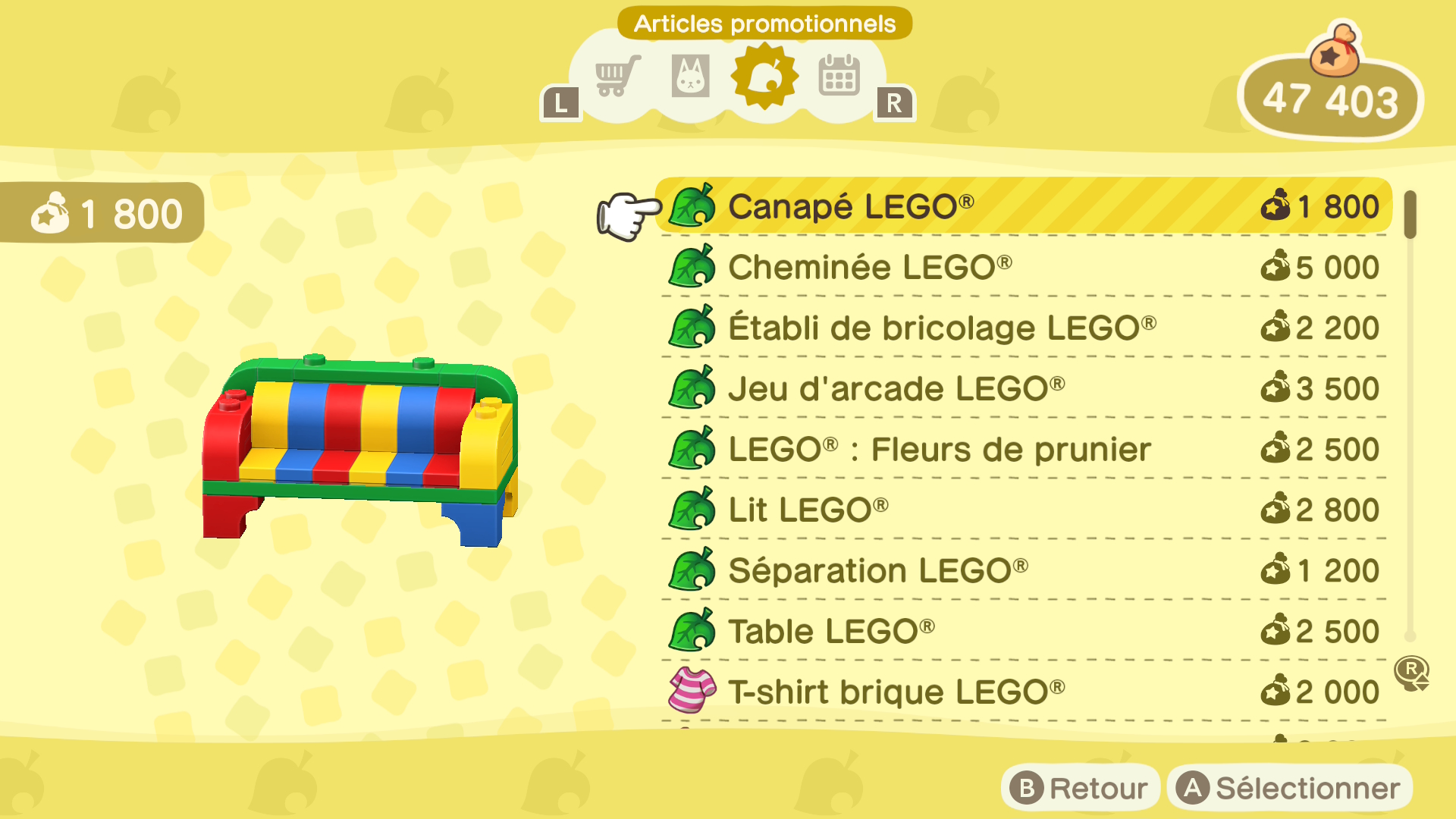 Finie la démotivation devant un champ de fleurs interminable : désormais, ces mêmes fleurs seront stockés dans l’espace de rangement. Je vais enfin pouvoir reprendre certains chantiers, abandonnés à cause d’une flore envahissante… Enfin, on notera aussi l’arrivée des collaborations avec LEGO, Splatoon et Zelda. Un tas de meubles à l’effigie de LEGO sont dès à présent disponibles à l’achat sur le Nook Stop. Pour profiter des deux dernières, comprenant 2 habitants par collaboration ainsi que des meubles exclusifs, il faudra se procurer divers amiibo.