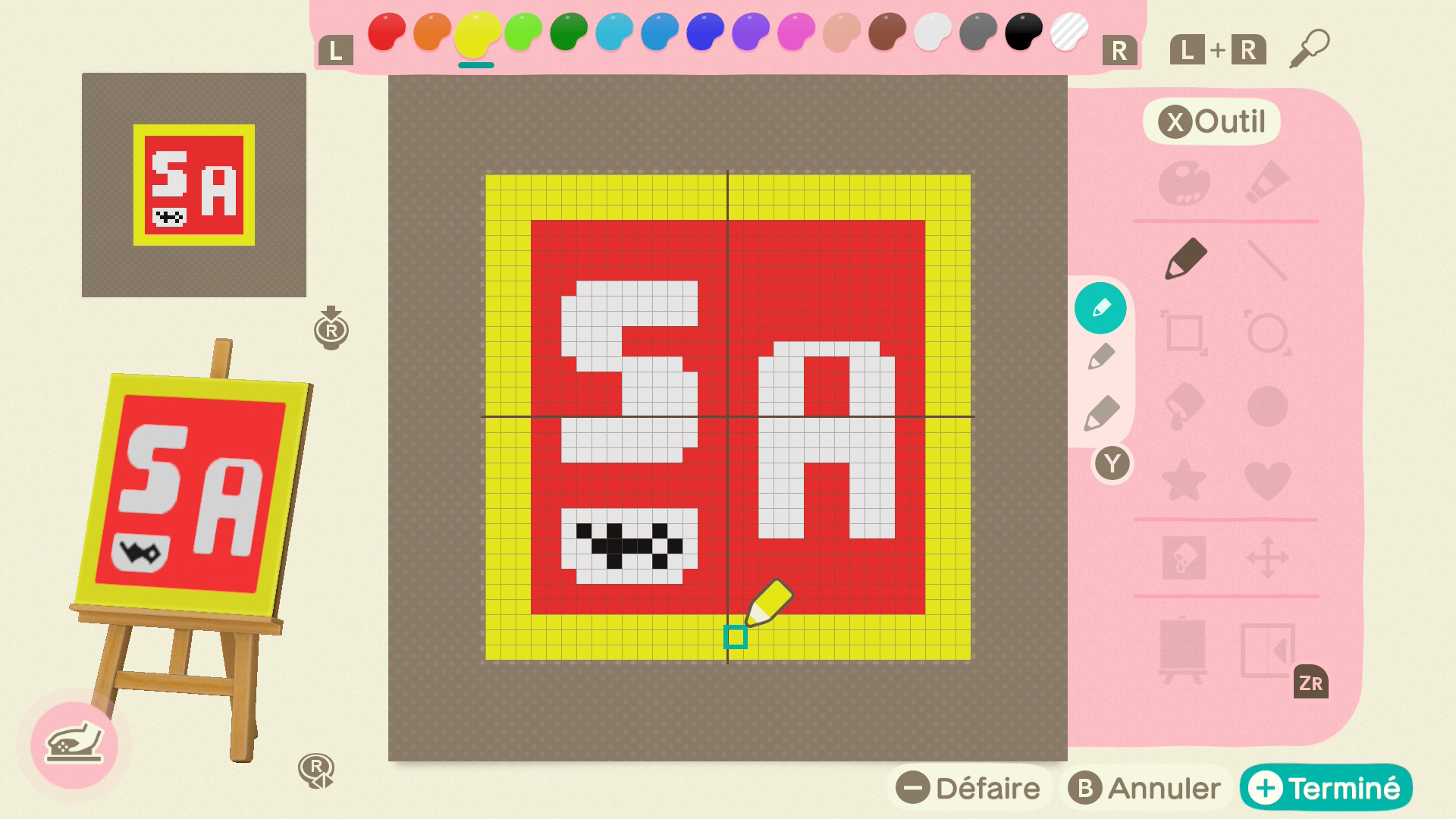 Alors je vous laisse admirer ma création ci-dessous. En toute objectivité, le dessin à la souris restera toujours moins pratique que le tactile. Mais ce n’est pas tout, puisque la conception de motifs personnalisés se montre aussi compatible avec le mode souris. Et là aussi, c’est assez mitigé : tout de même plus agréable que le dessin, le mode tactile semble à nouveau plus propice. En revanche, si on s’éloigne de l’optimisation, le mode souris contribue à la promesse du “jouer partout, n’importe comment”. Malgré son efficacité moindre sur certains aspects, il permet toutefois une pluralité d’expériences.