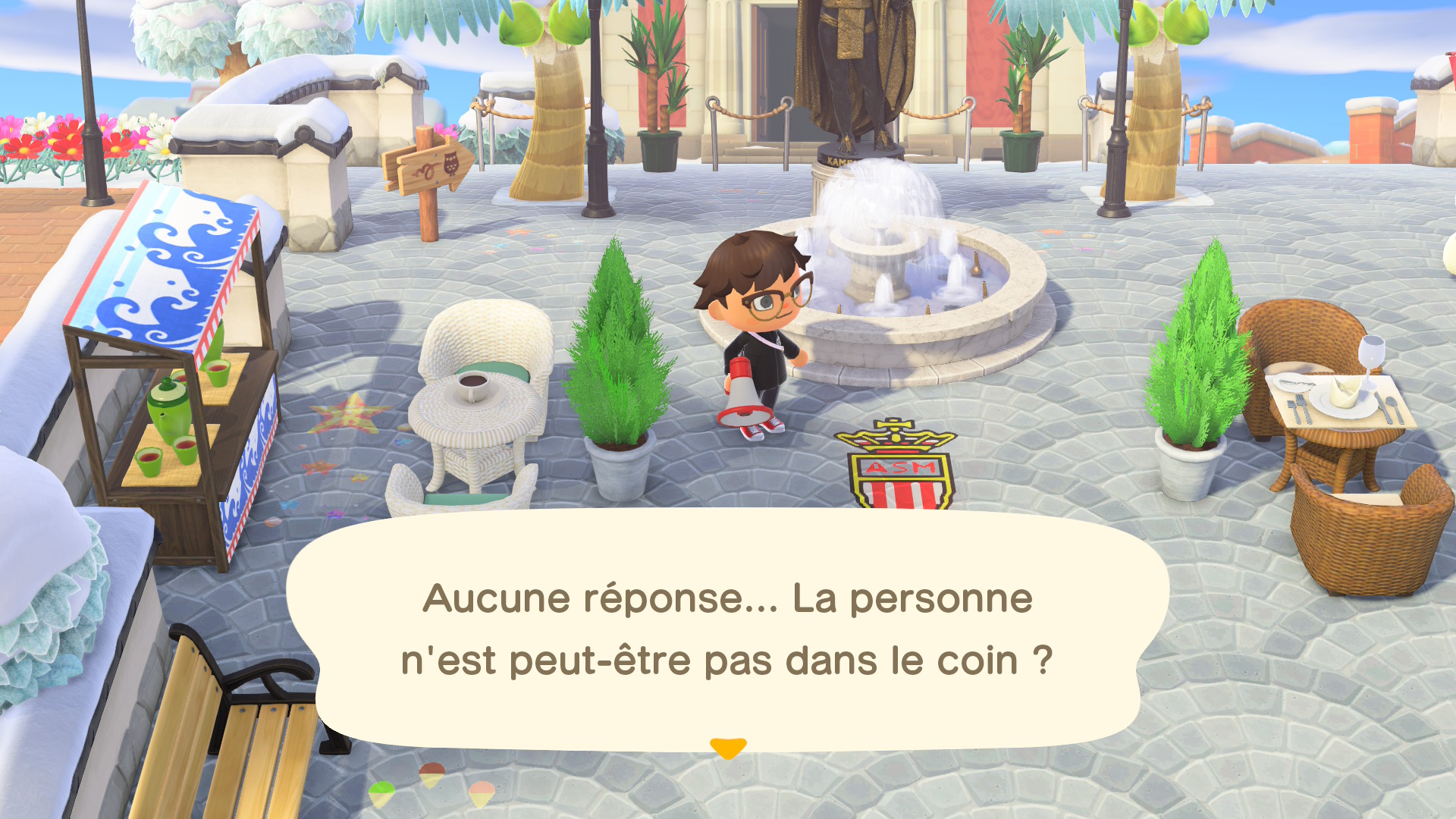 Malheureusement, cette fonctionnalité n’est pas parfaitement opérationnelle : Pour avoir appelé maintes et maintes fois certains habitants étant bien dehors, d’autres répondaient à leur place. Pourtant, Mathéo et Laura, ça ne se prononce pas du tout pareil : peut-être que l’un m’ignore et que l’autre a besoin d’attention ? En tout cas, au-delà de la fonction gadget, il peut être intéressant d’utiliser le mégaphone lorsqu’on a vraiment besoin de trouver un habitant ; lors d’une quête par exemple.
