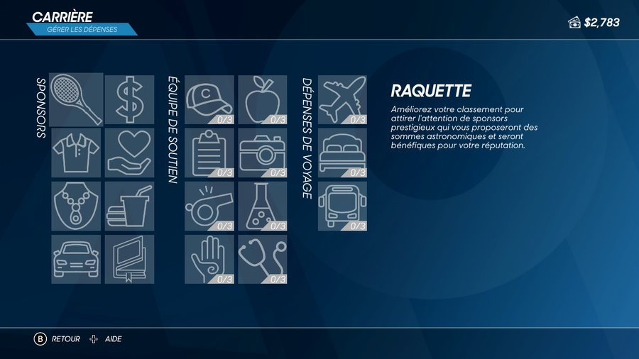Au niveau du contenu, ce mode promet d'être long. AO Tennis 2 inclut une gestion des sponsors et autres éléments extérieurs au court pour bien vous équiper en vue des matchs. De plus, non seulement vous devez enchaîner les tournois et les pauses, mais vous devez aussi gérer votre popularité. Grâce aux flèches bas et haut de la croix directionnelle, vous pouvez faire une réaction positive ou négative, ce qui influera sur l'image que les gens ont de vous. Notez aussi la présence sympathique de conférences de presse qui même si elles n'ont pas grand intérêt, ont le mérite d'exister tout comme les cinématiques incluant votre agent et les différents conseils (aussi intéressants qu'un match Isner-Karlovic) qu'il a à vous donner. La fonctionnalité la plus utile reste la possibilité de télécharger les complexes vers le mode carrière, ainsi que des listes de joueurs : jouer contre des stars du tennis sur des répliques des plus grands tournois du monde est tout ce qu'il y a de plus immersif !