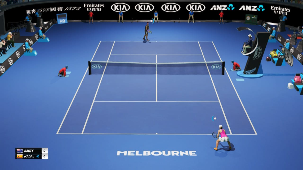 Au niveau des licences présentes dans le titre, sachez que ce n'est pas sa plus grande force : seuls 25 joueurs sont sous licence, dont 14 hommes (Rafael Nadal, Gaël Monfils, Stan Wawrinka, Nick Kyrgios, etc) et 11 femmes (Ash Barty, Karolina Pliskova, Caroline Garcia, Kristina Mladenovic, etc). L’Open d'Australie (qui vient de se terminer) est le seul représentant en terme de tournois, ne comptez donc pas sur la présence de Roland Garros, Wimbledon ou encore l'ATP 250 de Montpellier (pourquoi pas ?). Pire encore, Roger Federer, Novak Djokovic, Serena Williams et tant d'autres légendes du tennis ne sont pas représentées. Cette absence regrettable de contenu officiel est justifiée par les ressources peu élevées dont dispose Big Ant Studios, malgré tout compensée par une fonctionnalité intéressante : l'éditeur de contenu.