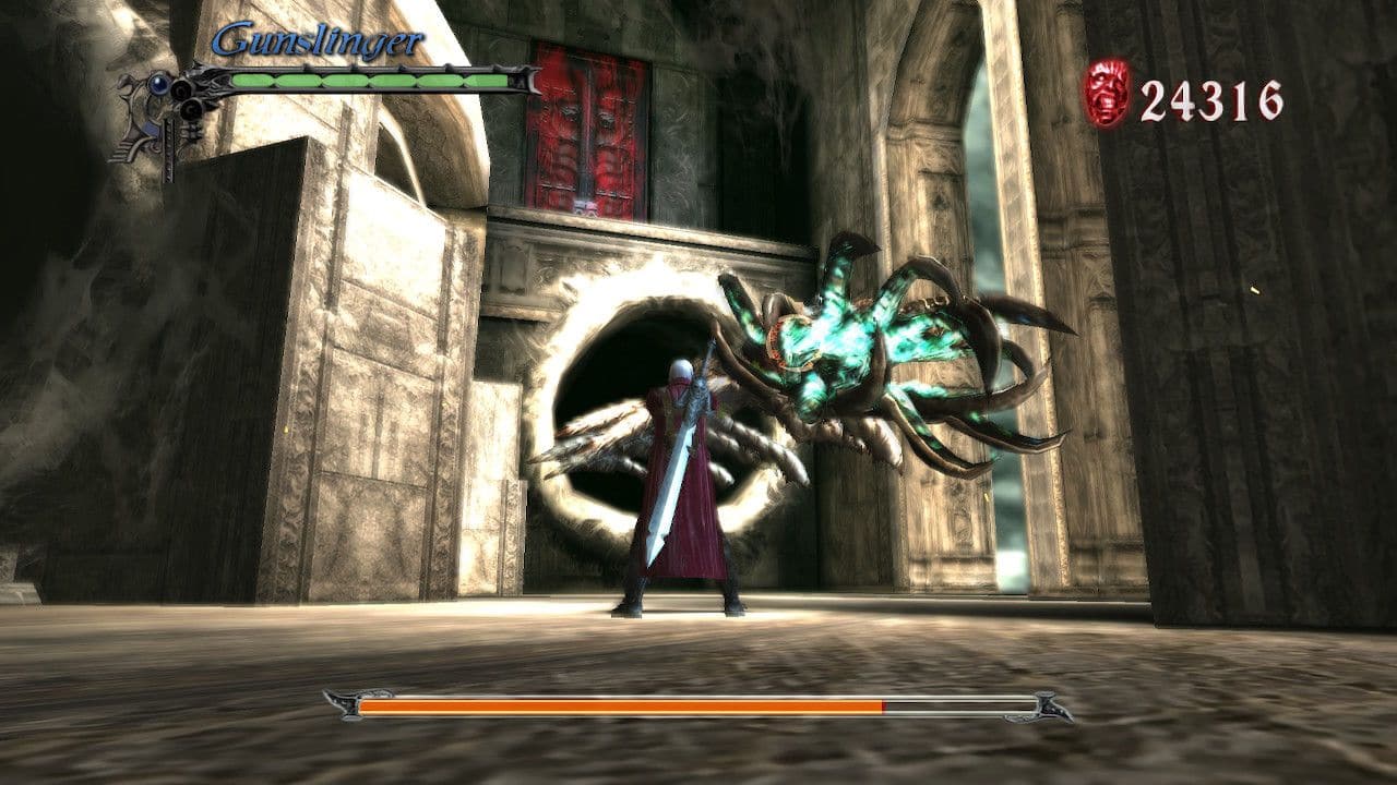 Mais passons. Passons, et essayons de se plonger dans ce qu’on m’avait vendu comme un incontournable chef-d’œuvre. Alors, disons que soit vous souffrez tous d’une forme d’hallucination collective depuis quinze ans, soit Devil May Cry 3 n’a pas spécialement bien vieilli. Je ne vais pas nier les bons points, absolument indiscutables : les combats sont indubitablement fun – la plupart du temps, mais j’y reviendrai, l’humour fonctionne toujours, il y un certain sens du style dans la composition des cinématiques, et le character design est aussi réussi que l’atmosphère. C’est à peu près tout, et c’est surtout un problème dans la mesure où il est possible de trouver un contrepoint à chacune des qualités citées : l’humour désamorce les enjeux dramatiques, les cinématiques sont au service d’une histoire inintéressante, et les niveaux dans lesquels évoluent les personnages sont assez hideux et pas très bien designés.