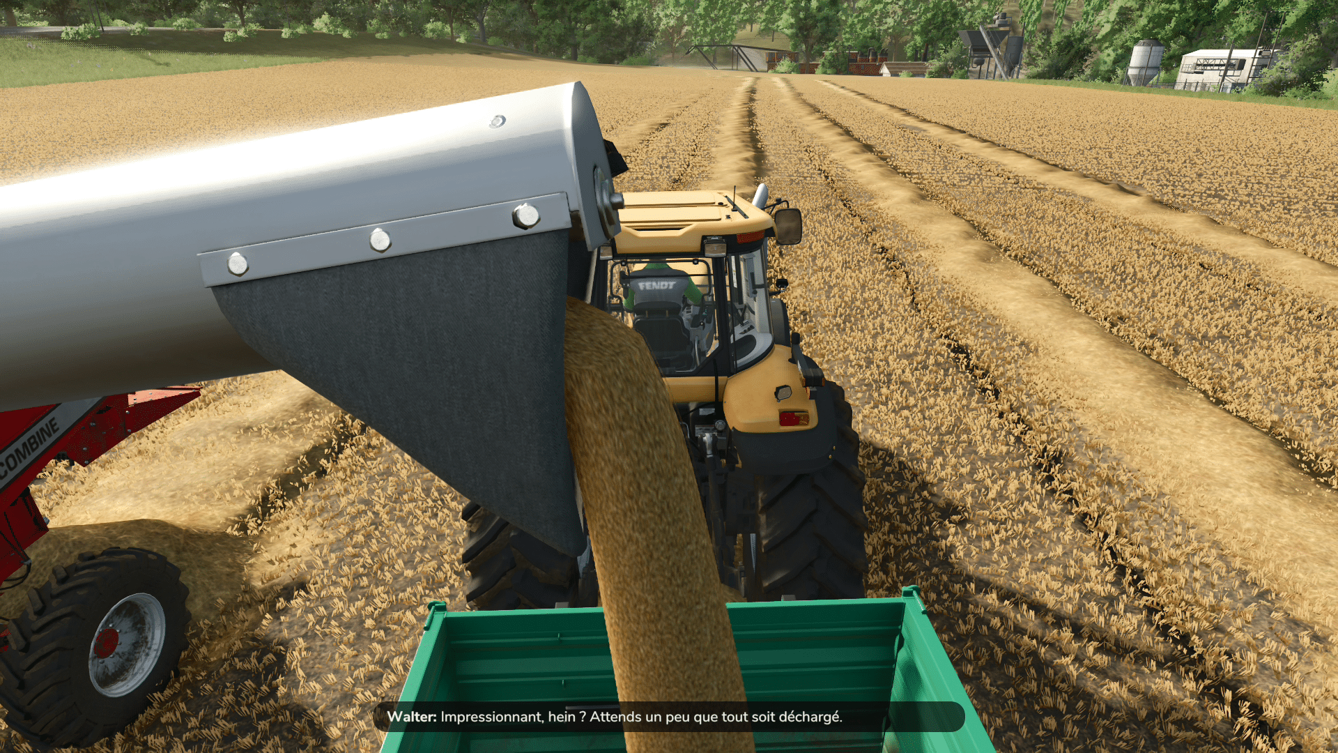 Mais malgré tout, la réalisation reste vraiment inégale. Le framerate, qui plafonne à 30 FPS, peine parfois à maintenir une stabilité, notamment autour de la ferme principale. Des ralentissements fréquents et quelques bugs visuels apparaissent, allant de collisions imprécises à des pertes temporaires de contrôle des véhicules. Et ne parlons pas des PNJ qui sont droits comme des poteaux morts ou des éléments de décor aussi solides qu’une pierre de 3000 tonnes (alors qu’il s’agit parfois d’un poteau électrique en bois qui n’est pas censé faire le poids contre une moissonneuse).