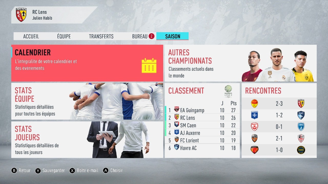 Fan de football depuis bien des années, né dans la région dans laquelle on supporte le grand Racing Club de Lens (Champion’s League 2 Project), j’attends chaque année avec une certaine impatience le prochain volet de FIFA sur lequel je jouerais. Jusqu’en 2017, je misais sur les versions PC ou Xbox One. Puis vint un jour une version plus humble, mais que je pouvais transporter dans le métro, chez le médecin, au travail, dans le lit, en voyage … bref, un FIFA de qualité, jouable partout. Alors non, FIFA 18 sur Nintendo Switch n’était vraiment pas au niveau de celui des autres plateformes. Mais de bons espoirs se créaient en moi. FIFA 19 n’a pas réellement changé la donne, mais une nouvelle fois, des améliorations ci et là donnaient envie de voir la suite. Au final, FIFA 20 est une Édition Essentielle : on prend le 19, et on recommence avec une mise à jour des maillots et des effectifs.
