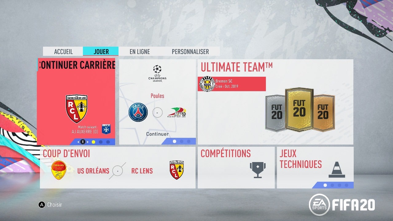Pour les modes de jeu, FIFA 20 propose donc exactement la même chose que FIFA 19, sans changement, sans nouveaux modes, sans modes en moins. Vous aurez droit à la Ligue des Champions, permettant de prendre part à une saison au sein de la prestigieuse compétition depuis les matchs de poule ; aux modes Carrière (joueur ou entraineur) où vous choisissez l’équipe de votre coeur pour la mener au plus haut, ou alors votre propre joueur, à FIFA Ultimate Team amputé de toutes les nouveautés et, c’est à peu près tout. Le mode coup d’envoi reste heureusement présent, avec la possibilité d’utiliser des règles spéciales (pas de hors jeu, pas de fautes, …). Pour le jeu en ligne, nous retrouvons les classiques saisons et les amicaux en ligne (avec vos amis donc).