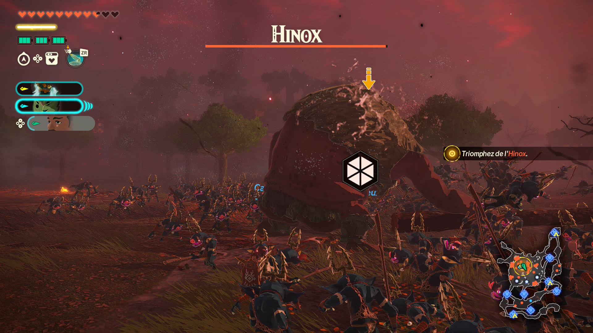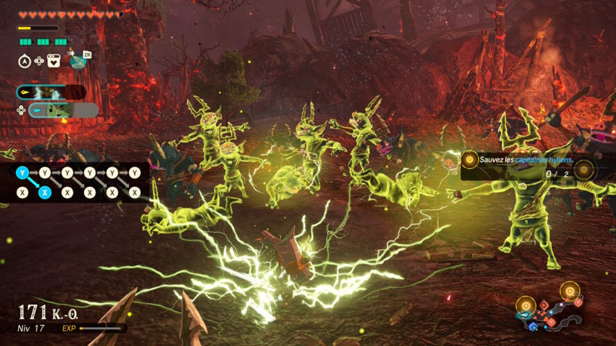 Si vous connaissez le genre du musō, vous ne serez pas surpris d’apprendre que cet Hyrule Warriors: Les Chroniques du Sceau ne fait pas vraiment dans la subtilité. L’objectif principal sera d’anéantir des hordes gigantesques d’ennemis, plusieurs centaines, voir plus d’un millier sur certaines missions. Au milieu de ces attroupements gigantesques de Bokoblins, Lezalfos ou encore Chuchus, quelques ennemis plus résistants demanderont davantage d’investissement pour en venir à bout. Afin de se débarrasser des ennemis les plus résistants de l’univers de Breath of the Wild que sont les Lynels, les Hinox ou bien les Lithorok, il faudra vider plusieurs fois une barre de faiblesse, dans le but de pouvoir enchaîner avec une attaque bien plus puissante. Bien souvent, l’élimination d’un de ces ennemis entraînera la chute d’une base adverse, permettant de reconquérir la carte petit à petit.