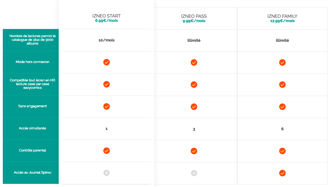 Mais comment accéder à toutes ces oeuvres ? Comme mentionné plus haut, Izneo fonctionne par un système d’abonnement à la Netflix mais propose également d’effectuer vos achats à l’unité. Je vous propose un petit résumé des différentes offres :