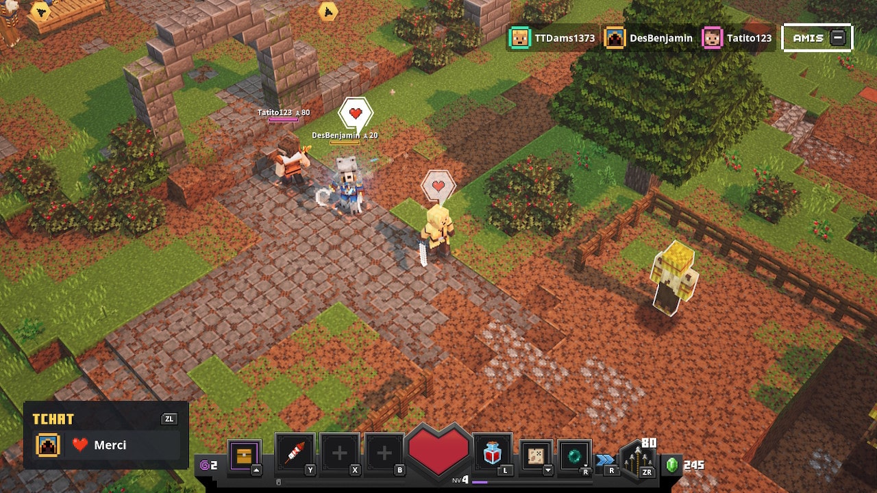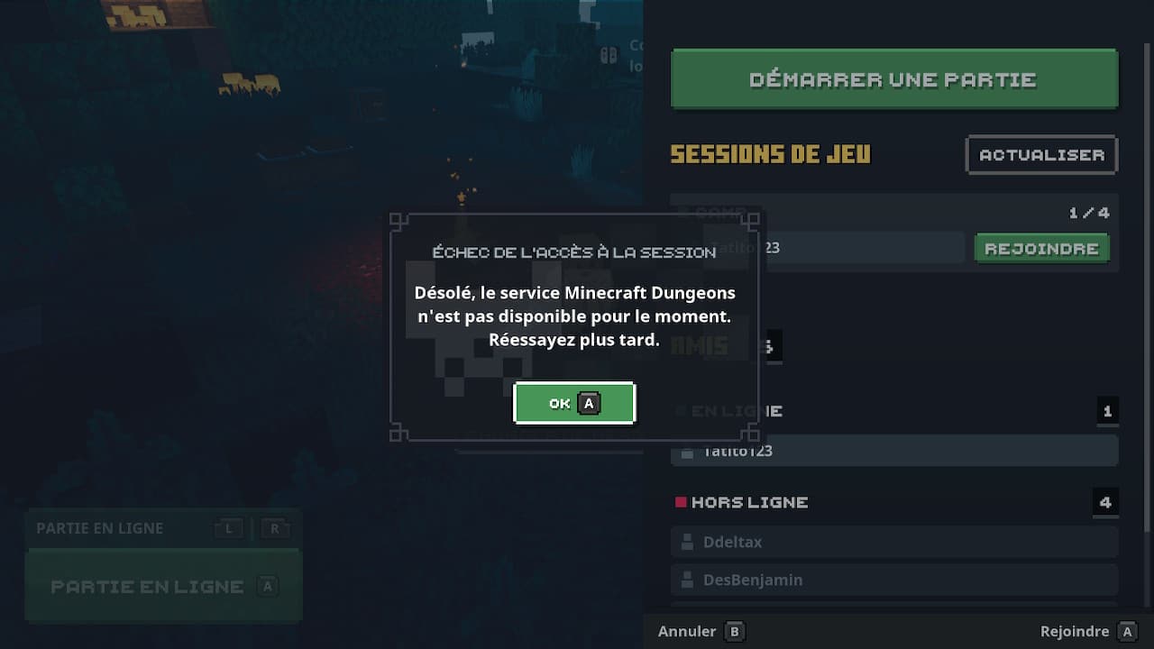 Lors de cette même preview, un côté particulièrement attirant de Minecraft Dungeons s’avérait être la partie multijoueur, et là encore, la version Switch ne s’en sort pas véritablement avec les honneurs. Tout d’abord, rejoindre une partie peut s’avérer être une tâche particulièrement difficile car de nombreuses erreurs de connexion pourront entacher votre accès en ligne. Une fois que par miracle, les joueurs parviennent à se connecter, rien n’est gagné, puisqu’en vérité, seule la personne hébergeant la partie pourra pleinement profiter du titre. Les autres participants devront subir lag et rollback en tout genre, rendant l’aventure dans les labyrinthes de Minecraft Dungeons complètement injouable à plusieurs. Bien que ces quelques défauts soient particulièrement handicapants à l’heure actuelle, nous pouvons toujours espérer une mise à jour permettant de régler les soucis de framerate ainsi que l’accès au jeu en ligne afin de permettre à ce Minecraft Dungeons de rayonner à sa juste valeur.