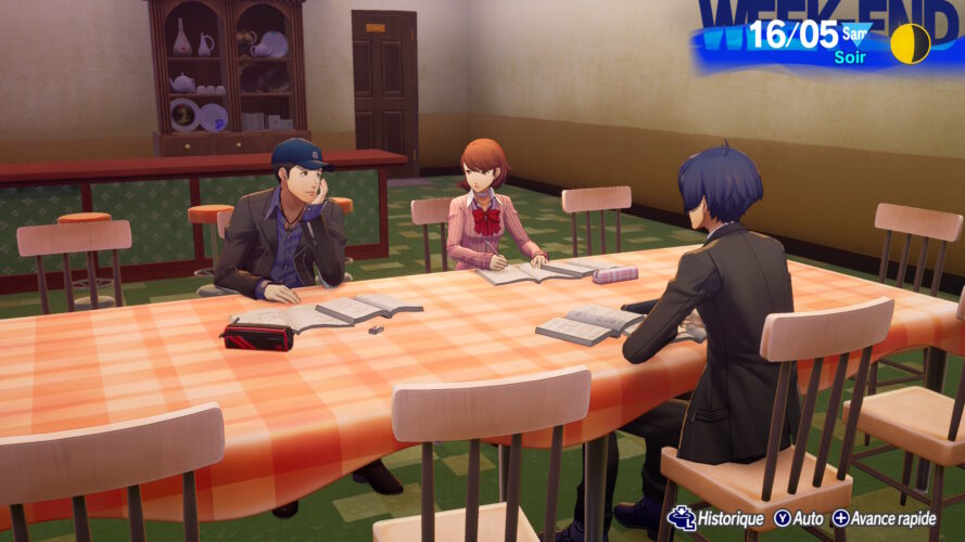 Le jour, ces lycéens vivront une ville on ne peut plus normale, entre révisions, moments passés entre copains et petits boulot. Mais, une fois l’heure cachée débutée, ils pourront se transformer en redoutables chasseurs de monstres – appelés ici « ombres », qu’ils pourront occire en invoquant des Persona, entités aux pouvoirs variés décuplant leurs forces. Comme d’habitude dans la série, Persona 3 Reload est découpé selon un calendrier et vous fera jouer au rythme des années scolaires, avec des événements se déroulant à intervalles réguliers en fonction du cycle de la lune. On notera d’ailleurs que les virées au Tartare sont (ou tout du moins, peuvent être) relativement rares, ce qui donne parfois au jeu un genre de faux rythme, avec de longues périodes de calmes entrecoupées qui suivront des journées ultra chargées, et je dois avouer que, malgré le côté relativement prenant de l’ensemble, l’ennui a parfois pointé le bout de son nez à cause de la redondance de la vie quotidienne, pourtant indispensable à mener pour pouvoir progresser dans l’aventure, notamment en renforçant son lien avec ses amis, qui permettra de renforcer la puissance des Persona associées.