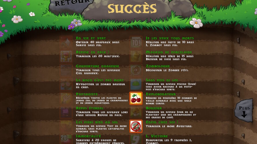 Dans le reste de son expérience, Plants vs. Zombies: Replanted cache, dans ses menus absolument infâmes à parcourir, un petit jardin dans lequel il est possible de cultiver ses plantes afin de pouvoir les revendre pour en tirer une somme assez importante. Cette monnaie permettra entre autres d’augmenter le nombre d’emplacements disponibles pour embarquer des graines dans les niveaux ou bien de nouvelles plantes et amélioration des plantes déjà en notre possession pour se défaire des zombies. On peut par ailleurs retrouver l’ensemble des niveaux, des mini-jeux et des énigmes à la carte dans des menus dédiés, permettant de jouer à la carte aux modes que l’on souhaite.