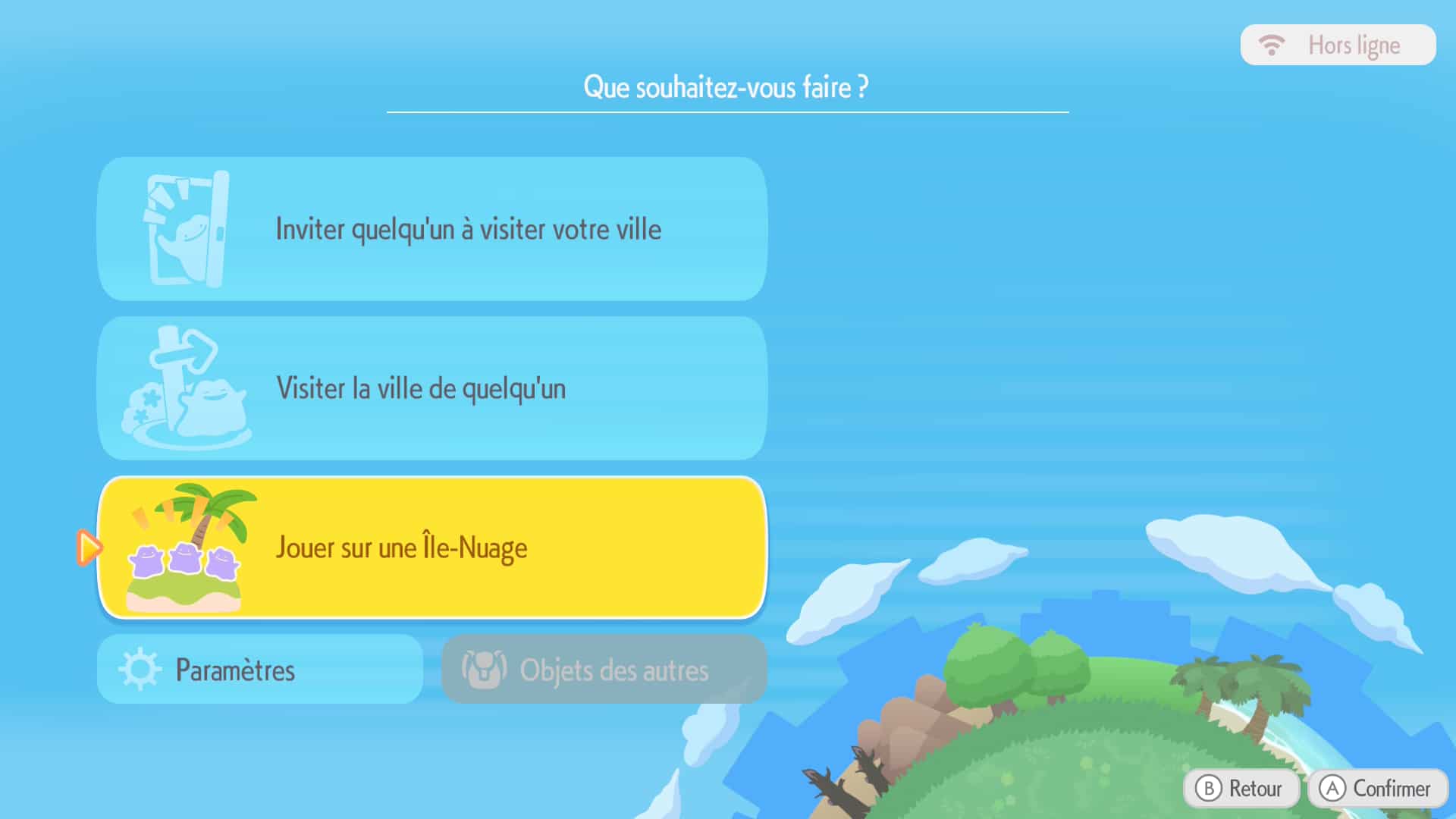 C’est notamment sur cette île qu’il sera possible d’utiliser la fonctionnalité GameShare, qui permet de partager le jeu avec un invité ne le possédant pas, qu’il soit sur Nintendo Switch 1 ou Nintendo Switch 2. Une bonne fonctionnalité malheureusement entachée par les contraintes qui entourent l’invité. A titre d’exemple, ce dernier ne pourra pas concevoir des meubles à l’aide de l’établi, ni accéder à l’ordinateur du Centre Pokémon. A part ça, il y a un autre mode qui permettra de s’amuser davantage avec ses amis : les Iles Nuages. Ici, on fait face à une toute nouvelle ville générée dans le cloud, dans laquelle tout le monde pourra contribuer au paysagisme.