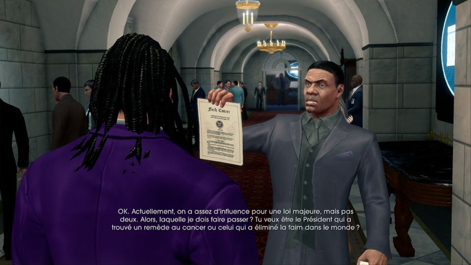 Contrairement à ce dernier, je ne vous conseillerais cependant pas de terminer toutes les quêtes annexes (ou plutôt « activités ») de Saints Row IV : souvent de légères redites, elles viennent, de par leur monotonie, atténuer un peu la folie de l'histoire principale. Foncez plutôt dans la quête principale (en n’oubliant pas les missions « loyauté », indispensables pour voir la vraie fin du jeu), qui devrait vous prendre une quinzaine d’heures : le plaisir sera certes plus bref, mais aussi plus intense. Vous pourrez ensuite foncer dans les DLC Enter The Dominatrix, qui préfigure ce que sera devenu ce Saints Row IV, et How The Saints Save Christmas, une drôlissime mission qui parodie avec succès les téléfilms de Noël. On regrettera en revanche l'absence de Gat Out of Hell, une aventure stand-alone fort réussie qui était pourtant vendue en pack avec cette version « Re-Elected » sur PlayStation 4 et Xbox One. Que cela ne freine néanmoins pas vos ardeurs : si vous avez aimé jouer à Saints Row: The Third, il n'y a aucune raison que cette suite à l'humour réussi, qui lui ressemble beaucoup, ne vous charme pas.