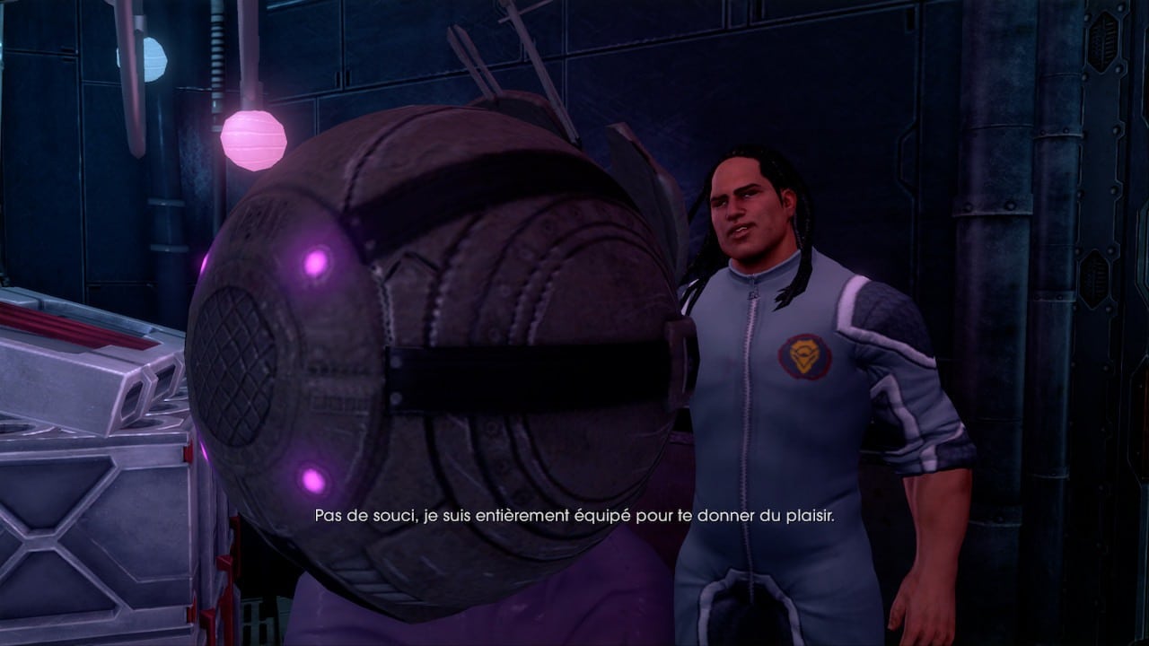 Dès lors, vous allez comprendre ce qui fait tout le sel de ce Saints Row IV : son humour constant, qui verse dans la parodie réussie de multiples jeux et films. On notera, entre autres, un passage faisant référence à Tron, le hub central du vaisseau qui, vous permettant de coucher avec tout le monde (sans limite de sexe ou même d'espèce, faisant du héros un véritable pansexuel) renvoie à Mass Effect, et un passage très savoureux parodiant Metal Gear Solid et les incohérences des jeux d'infiltration. S'il ne possède pas une histoire aussi prenante et épique que celle du troisième épisode, sa suite est en fait un véritable petit bac à sable pour Volition, qui permet aux développeurs de s'offrir toutes les folies et les expérimentations qui leurs viennent en tête (au point de ne pouvoir trop vous en dire, au risque de gâcher d’hilarantes surprises, mais sachez que vous allez faire un véritable tour d’horizon du jeu vidéo), ce qui permet aussi, au passage, de varier le gameplay et de ne jamais lasser le joueur dans sa quête de vengeance contre les aliens. De fait, ce quatrième opus rappelle presque le format d’un platformer à hub (pensez à Super Mario 64 ou Crash Bandicoot) dans son refus de la linéarité : le vaisseau vous permettra d’accéder à des missions qui se passeront souvent dans un environnement différent, avec chacun ses mécaniques de jeu.
