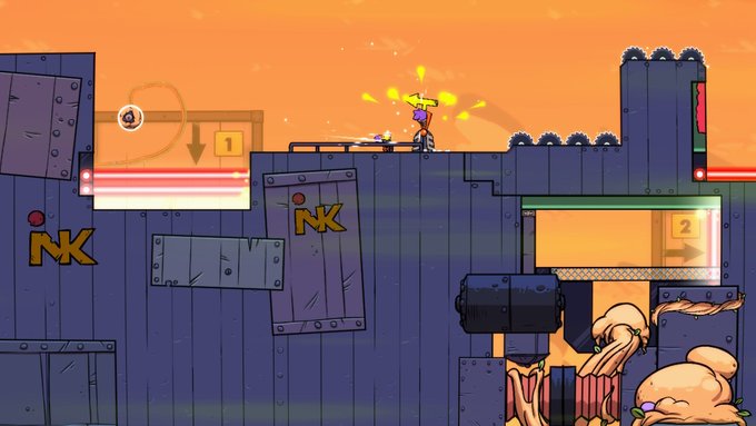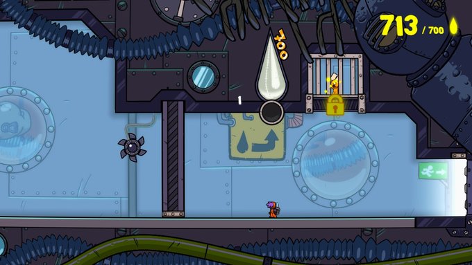 Les niveaux sont quant à eux peu nombreux : avec seulement 22, on a rapidement fait le tour de Splasher (comptez environ 5h si vous faites tous les niveaux en récupérant tous les employés : je ne compte pas l'aspect speedrun du jeu, j'y reviendrai). Mais ces niveaux sont d'une grande qualité et sont assez différents pour éviter un sentiment de répétitivité trop élevé. Cela est garanti par l'humour que peut avoir le jeu : par exemple, dans un niveau se déroulant dans un train, on entend le célèbre son de la SNCF lors des annonces en gare. De plus, les titres des levels sont des petits clins d’oeil à certaines franchises : on trouvera « Apocalink now », « The Wind Walker », « Ray Man Origin » et d’autres.