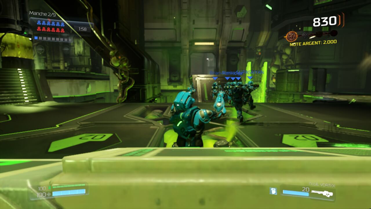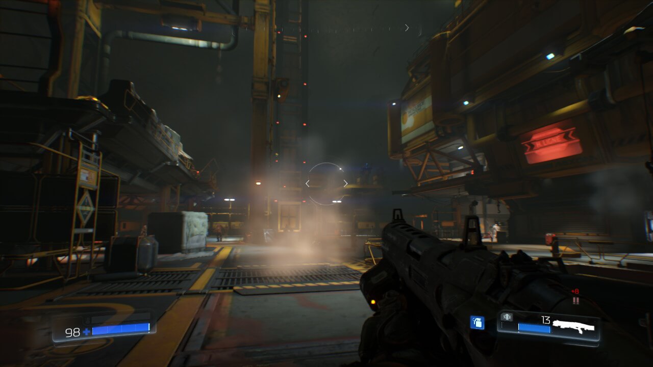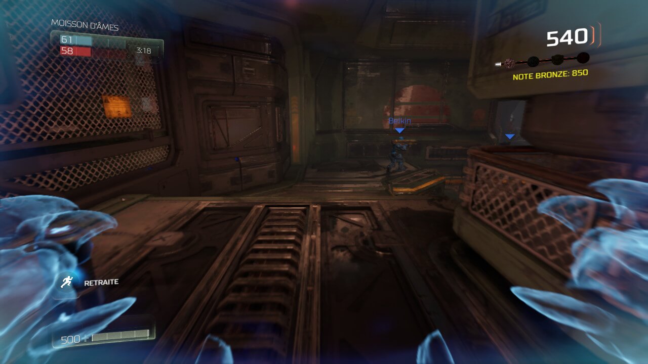Mais, tout cela n’est effectif que pour le mode solo de DOOM. Pour le mode multijoueur, aussi bon soit-il en terme de gameplay, c’est une autre paire de manches. La fluidité est la même : bonne dans des zones restreintes, mais des chutes de framerate sont présentes dans des environnements un peu plus ouverts. J’ai surtout eu le cas sur une carte » spatiale « , qui a été pour moi le pire moment sur ce DOOM. Côté graphique par contre, le bât blesse vraiment. Les adversaires, sauf s’ils sont à deux mètres de vous, ne sont qu’une bouillie de pixels. Si le jeu ne proposait pas de base une différenciation de couleur entre votre équipe et celle adverse, nous confondrions très souvent tout ce beau monde, tant il est impossible de voir à quoi ressemble la personne que vous avez dans le viseur. Les décors sont relativement propres quant à eux, même s’ils subissent une baisse techniquement parlant vis à vis du mode solo.