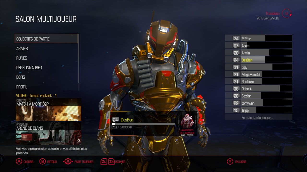 Le point noir de ce mode multijoueur concerne la personnalisation, qu’il s’agisse des armes ou de l’armure. D’un côté, le jeu propose relativement peu d’armes, mais elles ne sont surtout pas personnalisables. Pas d’équipement secondaire à savoir viseur, lance grenade, poignées. Il est possible de modifier votre armure en débloquant des pièces au fur et à mesure de vos parties, mais celles-ci ne sont que cosmétiques. Vous pouvez également en changer la couleur. Au final, le seul vrai élément utile dans la personnalisation est la célébration : dans une partie ou à l’annonce des résultats, vous pouvez effectuer vos célébrations, à savoir par exemple une imitation de voiture, un saut, un coup de batte de baseball … Il s’agit des seules choses que les adversaires verront réellement.