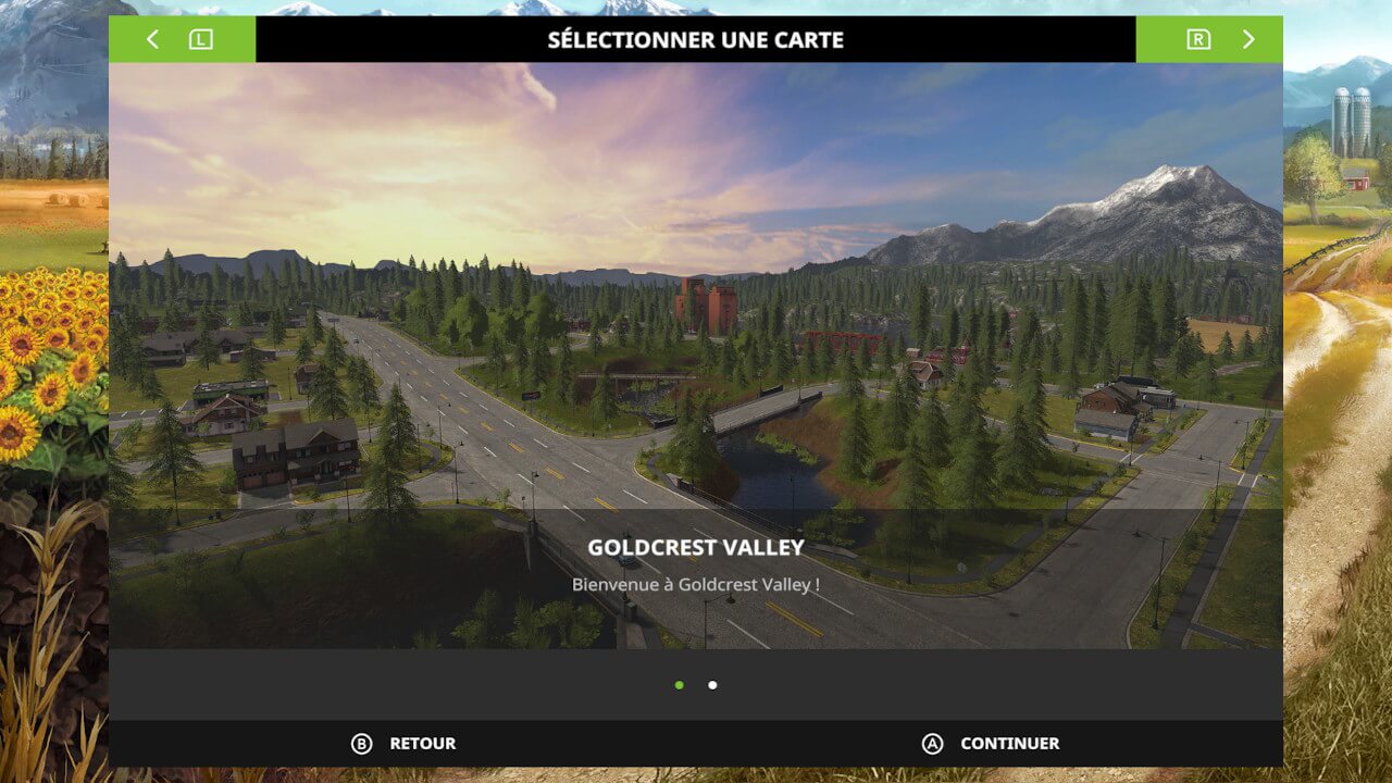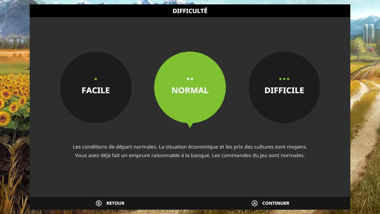 La grande majorité des joueurs n’a certainement pas d’expérience dans le domaine agricole. Sauf si vous travaillez dans le milieu, en arrivant sur Farming Simulator, absolument tout est nouveau et cela peut faire plutôt peur. Moissonneuse, cultivateur, labourage, ensemencement … Bref, des mots que nous connaissons parfois, mais auxquels nous ne savons pas forcément apposer une activité, mais ne paniquez pas, attendez le premier lancement de votre partie. Juste après avoir sélectionné la difficulté de votre partie entre facile (avec situation économique confortable et cultures qui ne s’abîment pas), normal (conditions classiques, premier emprunt obligatoire) et difficile (économie dure, gros emprunt obligatoire, tout est aussi réaliste que possible), le jeu vous donne le choix entre deux environnements : Goldcrest Valley, proche des montagnes américaines, ou Sosnovka, dans les plaines Russes. Hormis la carte en elle même, rien ne change selon le lieu sélectionné. Vous avez ensuite la possibilité de personnaliser rapidement votre personnage, à savoir homme ou femme et la couleur de sa tenue.