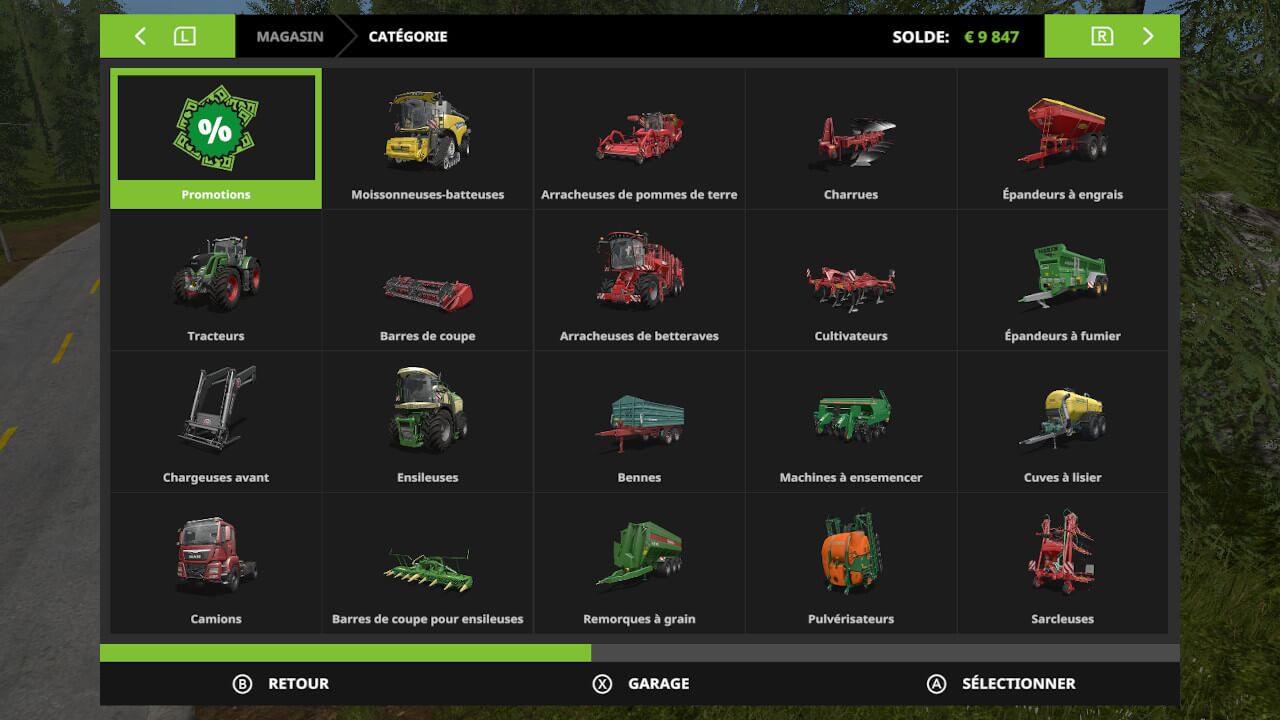 Disponible à un certain endroit sur la carte du jeu, le magasin est également accessible en appuyant sur la touche » – » de votre Switch. Au sein de celui-ci, vous pourrez acheter n’importe quel véhicule et outil dont vous avez besoin : tracteurs, moissonneuses, pulvérisateurs, épandeurs, voitures, équipement forestier, palettes de ressources, objets de décoration … tout y passe. Hormis les éléments à placer dans votre ferme comme les ruches ou la décoration, chaque achat doit être récupéré devant le magasin. Faîtes donc bien attention, n’achetez pas une palette si vous n’avez pas les outils pour la déplacer. Dans ce même menu, vous avez accès à votre garage listant tous les éléments en votre possession, avec possibilité de les revendre si besoin. Petit bonus dans le magasin, vous pouvez acheter un Karcher, permettant de nettoyer vos véhicules. Cela ne modifie strictement rien dans l’utilisation de ceux-ci, mais c’est … plus joli quand c’est propre.