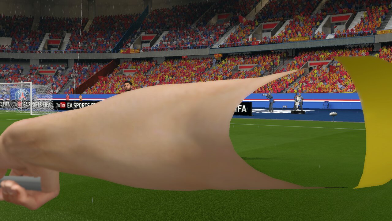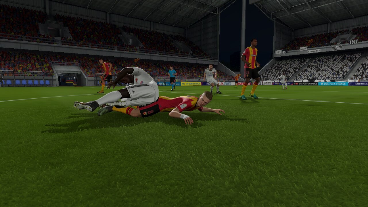 Les lacunes sont aussi visibles sur certains bugs du jeu, certains soucis physiques ou graphiques. Il n’est pas rare de voir un de ses joueurs totalement bloqué sous un joueur adverse, censé être au sol voire blessé. D’autres problèmes techniques plus légers sont apparus dans mes heures de jeu : le bras de l’arbitre de touche qui s’incruste devant la caméra d’un ralenti, une touche qui prend du temps à se jouer car aucun joueur ne bouge, un tir raté car le joueur refuse de tirer. D’autres problèmes moins gênants mais notables sont par exemple la désactivation du HUD (l’affichage en jeu, comprenant entre autres le score, le nom du joueur, etc) en plein match, et l’affichage des boutons de commande du menu pause (à savoir « retour » et « valider« ) en plein match.