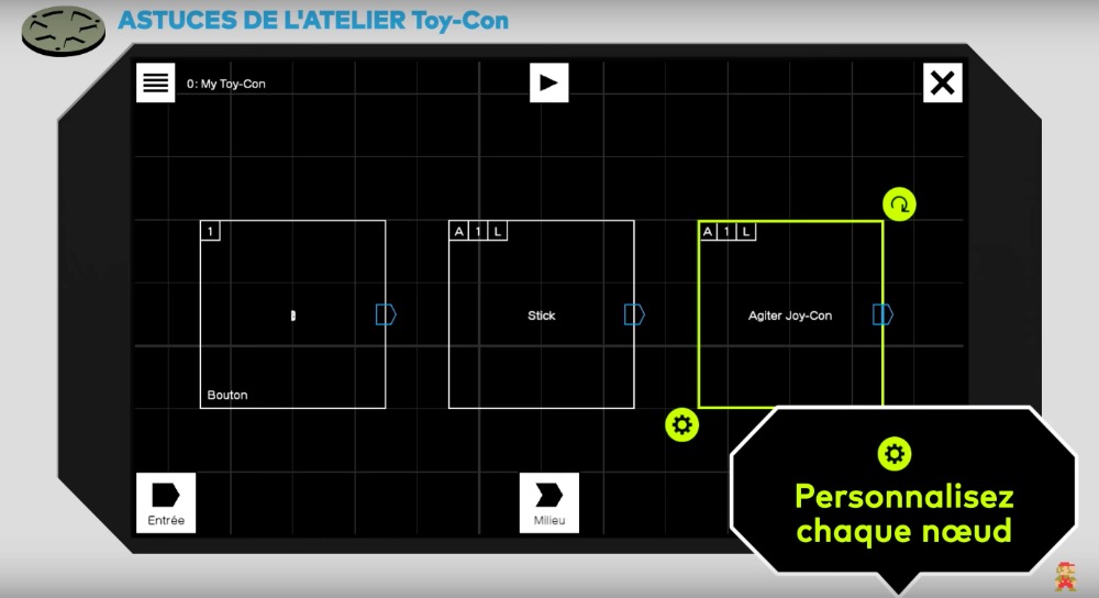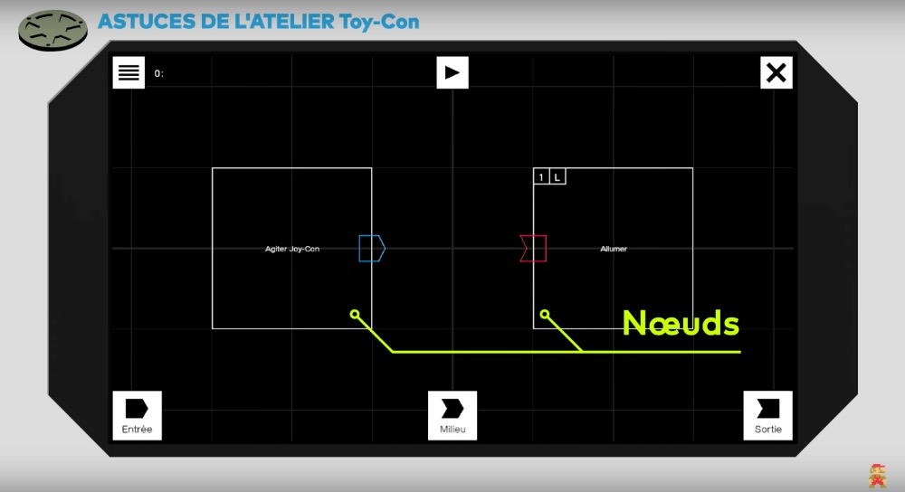 Cette section de Nintendo Labo est probablement la plus intéressante pour quiconque s’intéresse un peu à l’aspect technique du concept. Guidé par trois petits personnages humoristiques, le joueur peut s’initier à la programmation grâce aux divers conseils prodigués par le jeu et surtout avec le Laboratoire Secret. Alors que les trois protagonistes vous expliqueront le fonctionnement de chaque partie de votre Toy-Con, le Labo Secret défie votre créativité en vous permettant de lier des entrées et des sorties de votre choix directement sur la console.