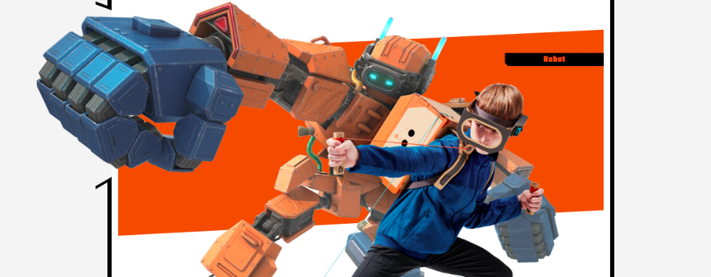 Il est réellement plaisant de comprendre comment fonctionne ce petit robot : le « sac à dos » (ou unité centrale) porté par le joueur renferme un véritable trésor d’ingéniosité pour capter les mouvements de votre robot. À l’intérieur se trouvent quatre boîtes de carton sur lesquelles vous aurez fixé une mince bande d’un papier réfléchissant très particulier. Chaque boîte est reliée soit à une main, soit à un pied par un système de ficelles colorées ce qui permet, d’un simple mouvement, de faire monter et descendre ces fameuses boîtes émettant un petit flash lumineux (grâce au papier) qui sera capté par votre Joy-Con Droit, inséré dans l’unité centrale. Grâce à la caméra infra-rouge de la manette, la console détecte les mouvements que vous faites avec une finesse surprenante, vous permettant ainsi de déplacer votre robot.