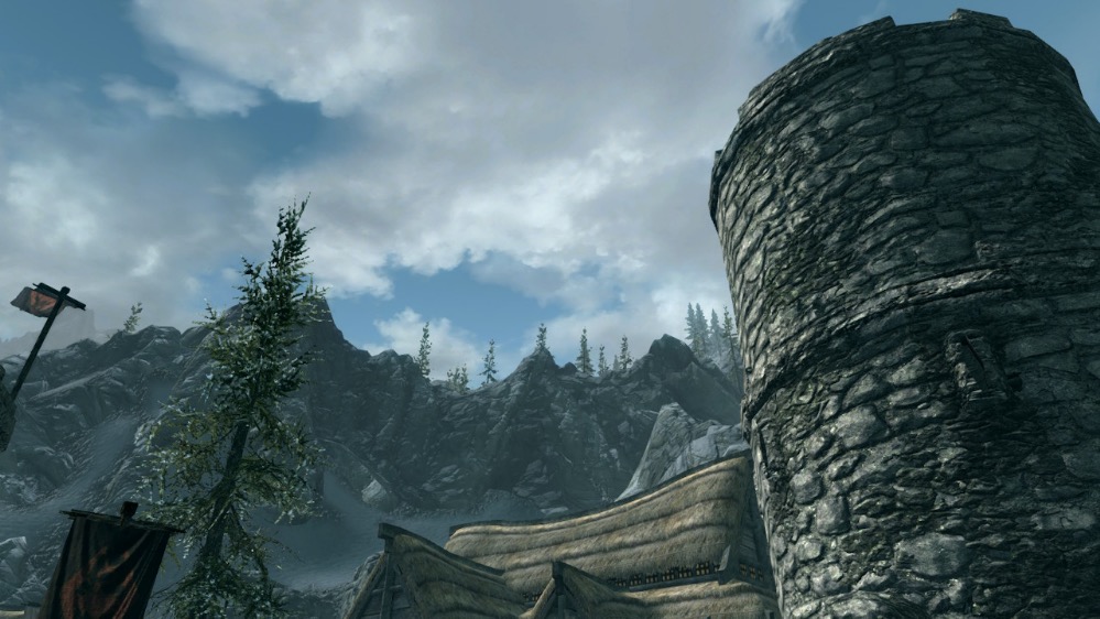 Ce qui nous a réellement frappés dans cette version Nintendo Switch est la qualité technique que Bethesda est parvenu à obtenir, notamment en mode Portable. Sans exagérer, on peut employer le terme de prouesse quand on voit le rendu sur l’écran de la Switch. Les paysages sont superbes avec de très beaux jeux de lumière et des mouvements de fluides de très bonne facture. En revanche, le rendu est nécessairement moins impressionant sur un écran TV où l’on remarque les concessions qu’a du faire Bethesda pour faire tourner le titre. Mais peu importe, l’aspect général est tout à fait agréable, sans aucune chute de framerate, fixé à 30 images par seconde. Niveau résolution, nous nous trouvons avec 720 pixels en Mode Portable et 900 en Mode TV, sans aucune baisse également. De ce point de vue, Bethesda a réalisé un excellent travail d’optimisation qui donne ainsi un portage de grande qualité pour un jeu qui l’est tout autant. Par contre, les années passées sont visibles sur les animations vieillissantes sur les bords, notamment chez les Dragons en plein vol. On note également la persistance de quelques bugs, mais rien de bien handicapant. Certains sont mêmes très amusants à observer : essayez donc de prendre un coup de massue de la part d’un Géant, et vous aurez droit à un petit voyage dans la stratosphère tous frais payés !