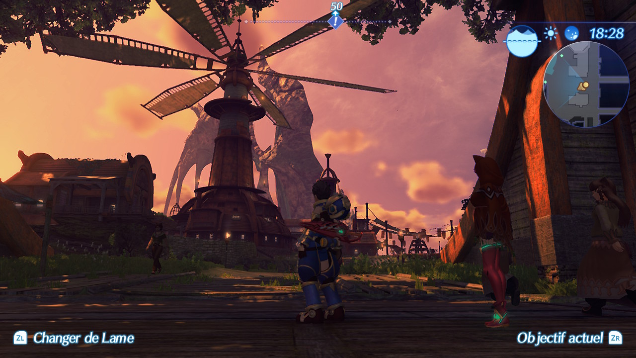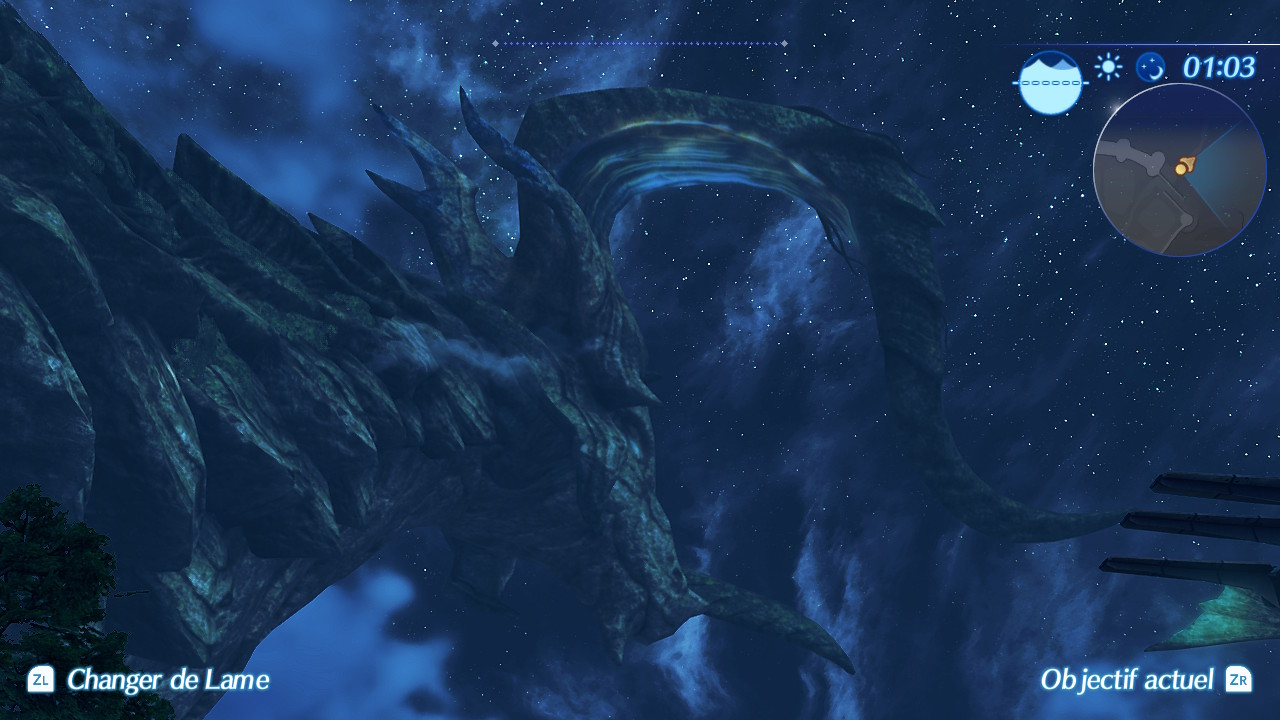 Un point qui divise est également la technique du jeu. Attention cependant, si le « bad buzz » a fait beaucoup de bruit, notez qu’il est somme toute très exagéré sans pour autant être injustifié. Si du côté Télévision, le jeu est tout à fait agréable, la côté Portable l’est beaucoup moins. En soi, le jeu n’est absolument pas injouable (comme un certain RiME) sur l’écran de la Nintendo Switch, mais la différence de rendu entre les deux configurations est trop grande pour ne pas être relevée. Le jeu devient subitement beaucoup plus grossier avec des variations de résolutions notables. On note également quelques légères chutes de framerate ainsi que certaines textures mettant du temps à s’afficher, sans cela soit bien handicapant en somme. Cela reste correct pour une console portable, mais indigne des capacités d’une console hybride ! Il est difficile d’imaginer que Monolith Soft ne puisse pas proposer mieux quand on voit que Nintendo parvient à proposer une expérience entièrement similaire avec The Legend of Zelda : Breath of the Wild. Est-il question d’un manque de temps d’optimisation devant la volonté de Nintendo de sortir le jeu en 2017 ? Fort heureusement, la surprise face au contraste est rapidement oubliée après quelques minutes en grande partie grâce à la formidable direction artistique du titre.