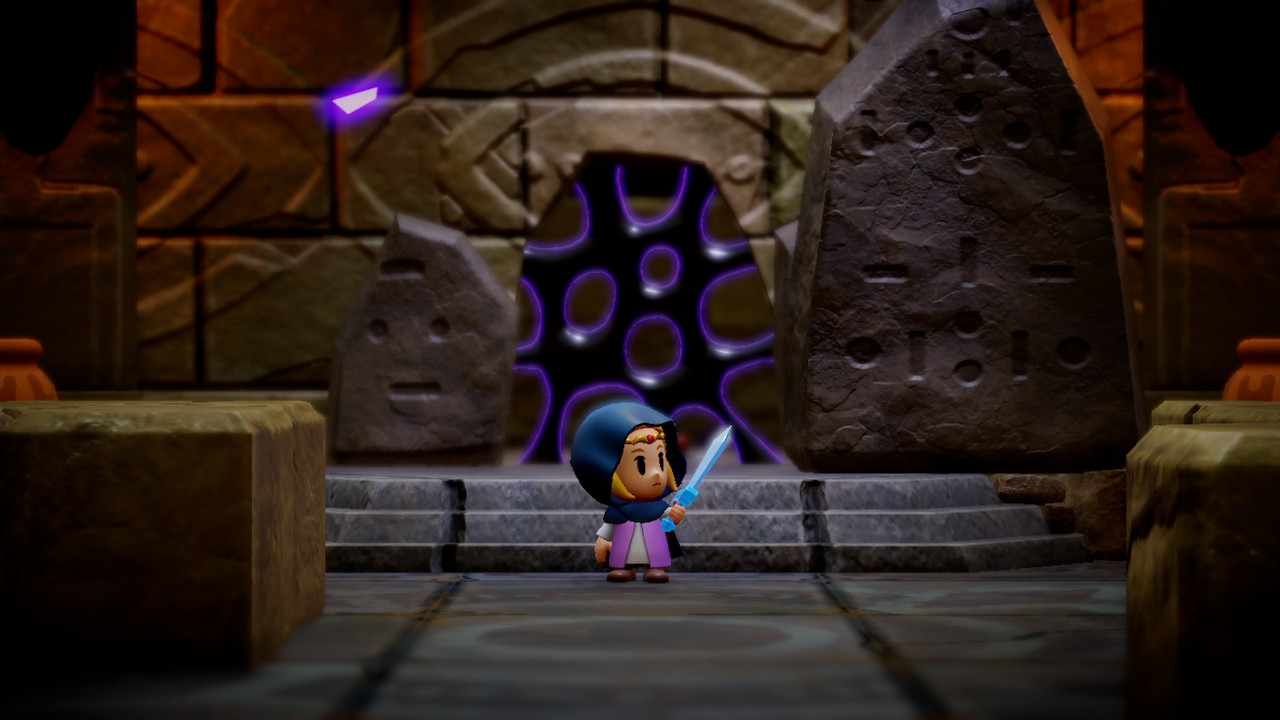 Le retour aux sources ne passe pas uniquement par le retour d’un gameplay en 2D, mais aussi par tout un tas de marqueurs de la série Zelda qui avaient plus ou moins disparu dans les jeux en monde ouverts. Bien que la formule s’étoffe d’un monde ouvert très libre, l’avancement de l’histoire principale sera parfois balisé par l’accomplissement de donjons, disséminés aux quatre coins d’Hyrule. Ces moments très propices à la résolution d’énigmes reprennent une structure relativement connue pour la série. On y retrouve plusieurs salles dont il faut réaliser les puzzles, récupérer les petites clés ainsi que la carte du temple pour finalement tomber sur la clé dorée permettant d’ouvrir la salle du boss qui viendra conclure l’exploration du lieu. On notera que si le retour des donjons reste un plaisir pour les amateurs de la série, ces derniers restent relativement simples à parcourir. Les premiers s’apparentent plutôt à des exemples d’utilisation des échos, tandis que les suivants restent relativement classiques dans leur construction. Bien qu’inégaux, les affrontements contre les différents boss demeurent très agréables dans l’ensemble.