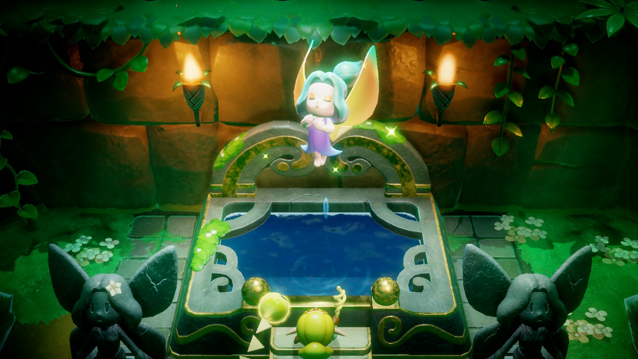 Zelda va donc devoir partir arpenter les terres d’Hyrule afin de refermer les nombreuses failles à l’aide d’un petit personnage, Tri. Lors de l’exploration de ces dernières, il sera possible de trouver de nombreux esprits ressemblant à notre accompagnateur, permettant d’augmenter sa puissance et d’effacer ces taches violettes de la carte. Afin de retrouver ces petites boules jaunes, le joueur devra soit explorer des environnements totalement déformés, se rapprochant davantage de petites phases de plateforme, soit résoudre les énigmes des donjons (dont nous reparlerons par la suite).