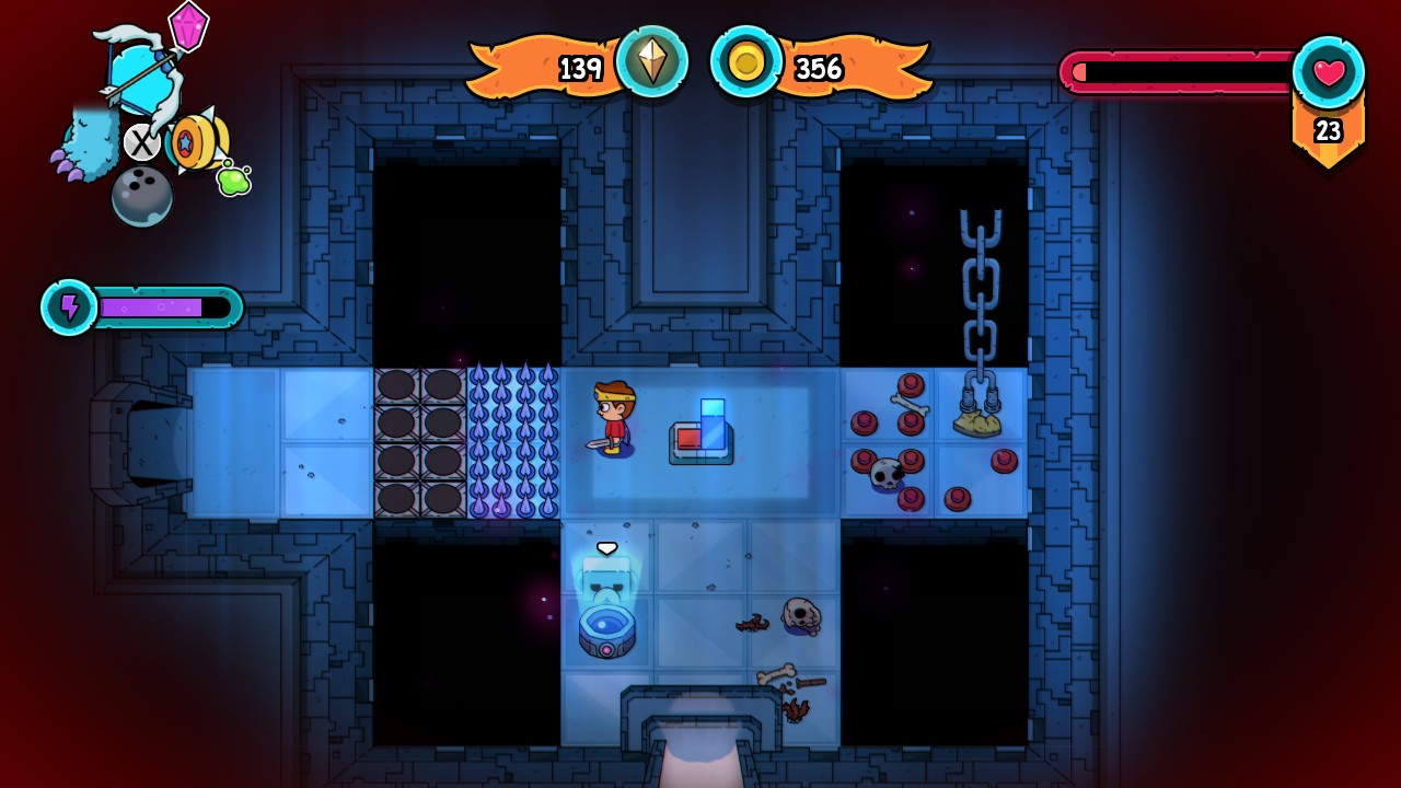 La seconde composante du jeu n’est autre qu’une partie énigme. Ces dernières représenteront une certaine partie du titre et vous pourrez en retrouver dans les quatre donjons principaux, afin de récupérer des jouets ou de détruire les ancres du boss final. Ces énigmes sont en majorité basées sur l’utilisation d’un jouet et donc d’une mécanique : activation d’interrupteur à l’aide d’une arme à distance, jeu d’adresse à l’aide du club de golf, ou encore placement du drone à des endroits prévus a cet effet. Certaines des salles contenant ces énigmes seront également remplies de monstres et la seule façon de sortir de celles-ci est de vaincre la totalité des monstres. Notons tout de même que, dans de rares cas, les salles ne se déverrouillent pas à l’issue de l’élimination de la totalité des monstres.