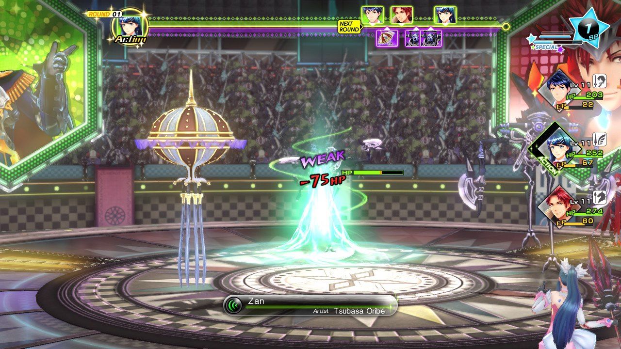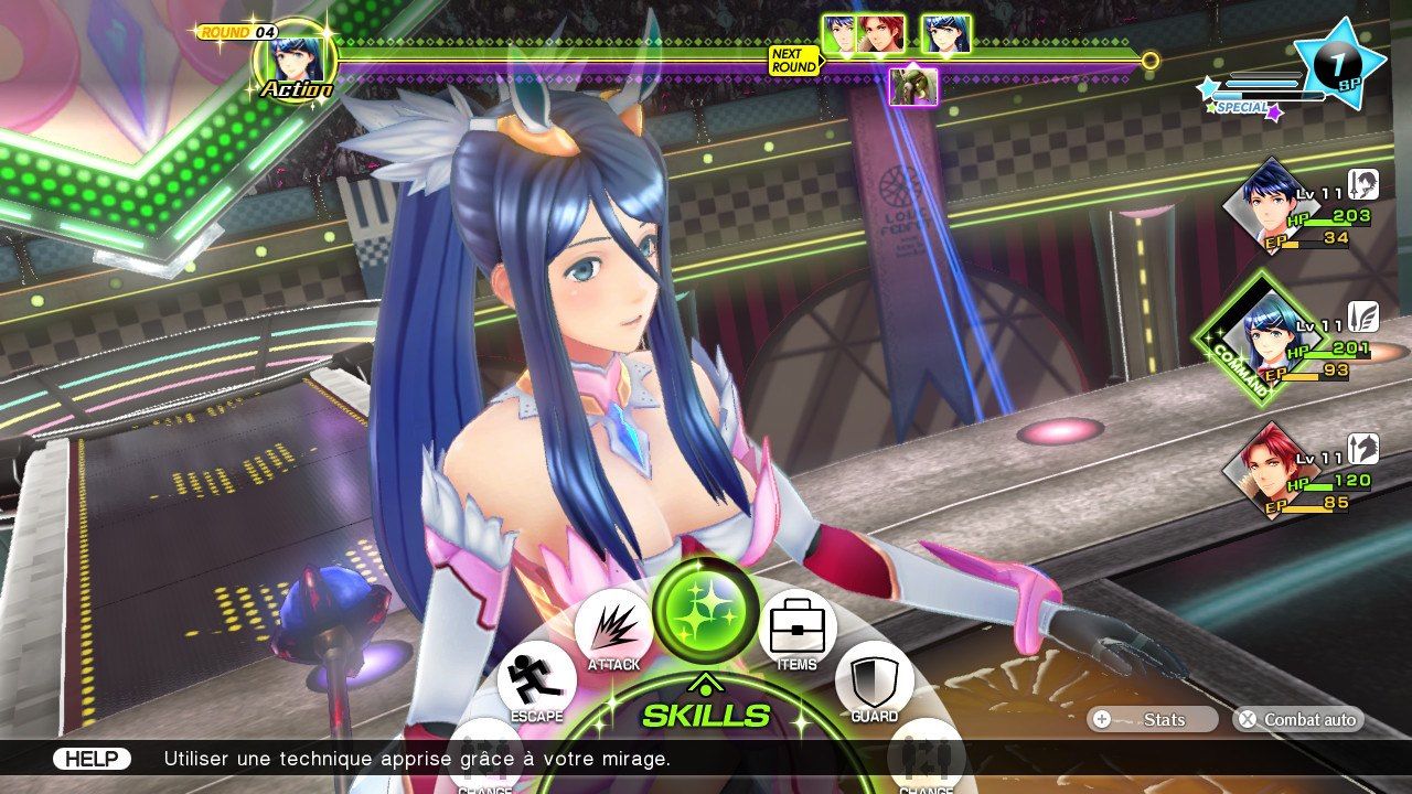 De fait, le système de combat se savoure mieux avec des ennemis plus forts que nous (même si une mort quasi instantanée vous guette si ceux-ci sont trop puissants). Très stratégique, il fera appel à toute votre intelligence et à votre sens de la planification, avec un indicateur de l'ordre d'action des personnages qui n'est pas sans rappeler celui de Final Fantasy X. S'il peut paraître trop complexe de prime abord, n'ayez crainte : mis en place petit à petit par des didacticiels, celui-ci est aussi simple à comprendre que complexe à maîtriser, et est d'une profondeur rare, qui ravira les amateurs de J-RPG, qui le reconnaîtront, tout simplement, comme l'un des meilleurs systèmes de combat au tour par tour de l'histoire du jeu vidéo, rien de moins. Pour essayer de l'expliquer simplement, votre personnage peut porter un coup normal, mais possède aussi des « skills », capacités qui puiseront dans votre jauge de magie. Ces capacités possèdent toutes un type (feu, vent, électricité…), ce qui tombe bien, car les ennemis possèdent tous des vulnérabilités. Si vous touchez l'ennemi avec une attaque d'un type face auquel il est faible, bingo : vous déclenchez une « session », c'est-à-dire que les autres personnages pourront, eux aussi, porter un coup à l'ennemi au cours de votre tour.