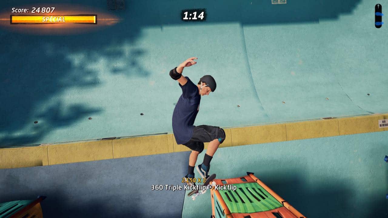 Le challenge proposé par le jeu est relativement corsé, et même pour les tâches basiques, vous allez devoir ruser et maîtriser les différents tricks en skate pour atteindre des scores suffisamment élevés. Car à un moment donné, bourriner les touches ne suffit plus, il va falloir réfléchir aux combos afin d’augmenter le multiplicateur. Vous vous rendrez compte rapidement que les manual et les flips, qui s’enchaînent relativement facilement, vont devenir vos meilleurs amis pour atteindre les paliers de scores à plus de 100 000 points. Bien évidemment, le jeu repose sur son gameplay, et mise tout là dessus pour tenir les joueurs en haleine. Car s’il est vrai que les objectifs sont durs à accomplir et que cela peut vite s’avérer frustrant, il est tout aussi vrai que le maniement du skate est un vrai plaisir manette en main. Vous vous surprendrez à enchaîner parfois sans raison quelques tricks alors que les objectifs ne le nécessitent pas forcément, car c’est simplement jouissif de réussir à faire plus de 100 000 points en un seul combo.