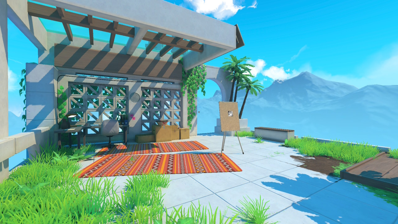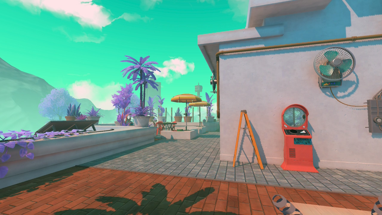 En plus d’un hub central composé de plusieurs zones reliées par un tramway futuriste, ce curieux métaverse vous permet de visiter plusieurs dizaines de niveaux vous proposant de résoudre des énigmes. Ces dernières reposent toutes sur la possibilité de truander allègrement la réalité et la perspective de bien des façons. La plus commune, qui donne d’ailleurs son titre au jeu, consiste à utiliser des photos, éparpillées un peu partout dans les niveaux, et à les positionner devant vous. La magie opère : ce qui n’était qu’une petite illustration en 2D devient alors partie intégrante de l’environnement 3D autour de vous. À noter que Viewfinder est entièrement en vue subjective ce qui contribue ingénieusement à cet effet « Waouw » quand on place notre première photo et qu’on les voit devenir réalité. Un gouffre vous empêche de traverser ? Placez donc la photo d’un pont pour vous créer un passage en quelques secondes, tout l’enjeu consistant à trouver un angle compatible.